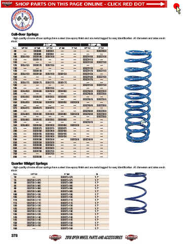 High-quality chrome silicon springs have a steel blue epoxy finish and are metal tagged for easy identification. All diameters and rates are in