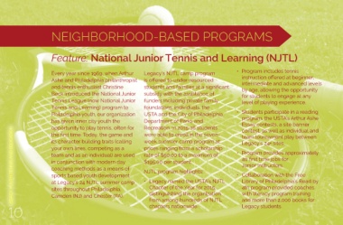 LEGACY YOUTH TENNIS AND EDUCATION your own lines, competing as a prices ranging from a scholarship • Program provides approximately Lance Lee accepting the USTA NJTL Cobbs Creek Garden Court Markward Seger Additional NJTL summer BIENNIAL REPORT: 2014/15 & 2015/16