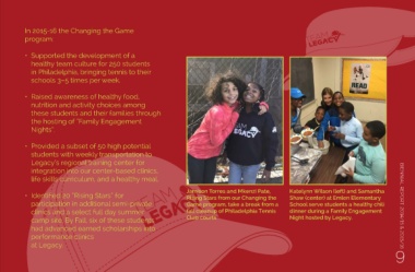 Changing the Game is Legacy Youth Tennis The in-depth program provides a year- • Raised awareness of healthy food,