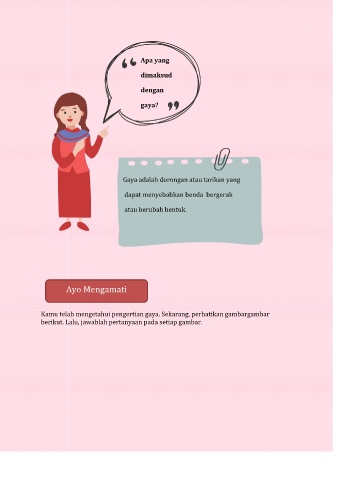 Kamu telah mengetahui pengertian gaya. Sekarang, perhatikan gambargambar