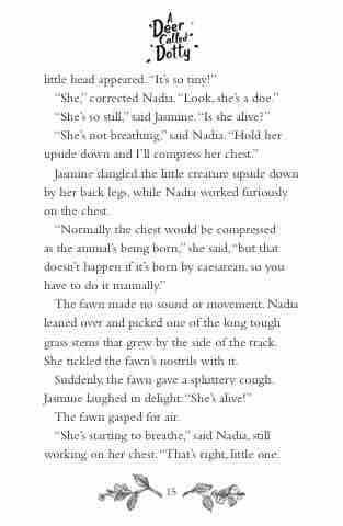 Suddenly, the fawn gave a spluttery cough. Jasmine laughed in delight.“She’s alive!”