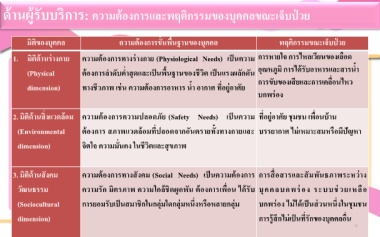 ด้านผู้รับบริการ: ความต้องการและพฤติกรรมของบุคคลขณะเจ็บป่ วย