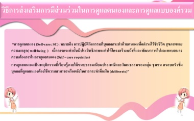 วิธีการส่งเสริมการมีส่วนร่วมในการดูแลตนเองและการดูแลแบบองค์รวม