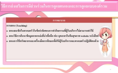 วิธีการส่งเสริมการมีส่วนร่วมในการดูแลตนเองและการดูแลแบบองค์รวม