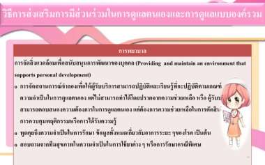 วิธีการส่งเสริมการมีส่วนร่วมในการดูแลตนเองและการดูแลแบบองค์รวม
