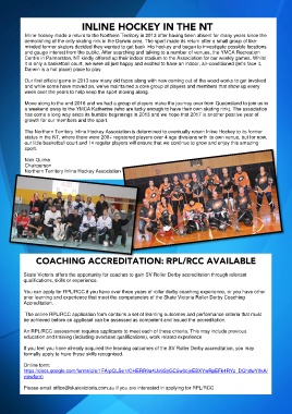 The Northern Territory Inline Hockey Association is determined to eventually return Inline Hockey to its former