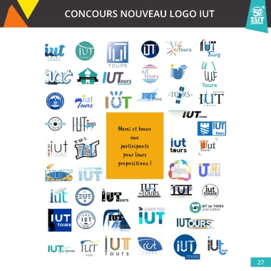 CONCOURS NOUVEAU LOGO IUT Concours Merci et bravo logo aux participants pour leurs IUT propositions ! 27 Merci et bravo pour toutes ces belles propositions ! Donnez-nous votre avis ! 50 ans - IUT de Tours