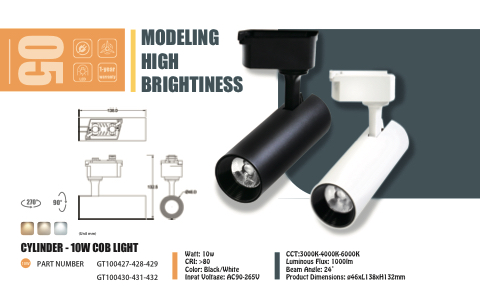 CYLINDER - 10W COB LIGHT 10W PART NUMBER GT100427-428-429 GT100430-431-432