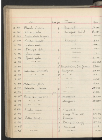 Page 116 - Samlingsjournal Fuglesamlingen 15001-20000
