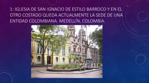 1: IGLESIA DE SAN IGNACIO DE ESTILO BARROCO Y EN EL OTRO COSTADO QUEDA ACTUALMENTE LA SEDE DE UNA ENTIDAD COLOMBIANA. MEDELLÍN, COLOMBIA.