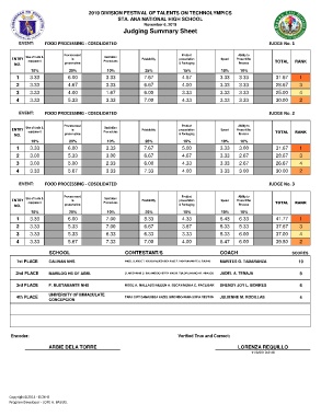 EVENT: FOOD PROCESSING - COSOLIDATED JUDGE No. 2