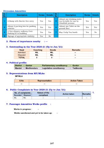 2 Atleast 2 parking lots for parking Yes Yes 6 Atleast one Toilet on the Yes Yes