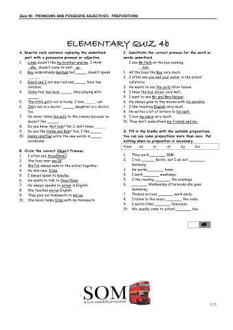 Quiz 4b - PRONOUNS AND POSSESIVE ADJECTIVES - PREPOSITIONS