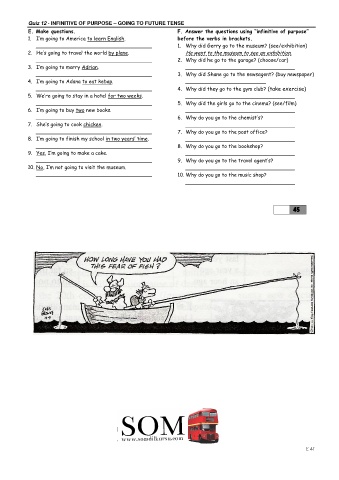 E. Make questions. F. Answer the questions using “infinitive of purpose”