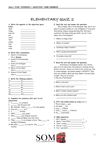 Quiz 2 - TO BE - POSSESIVE ‘s - ADJECTIVES - FAMILY MEMBERS