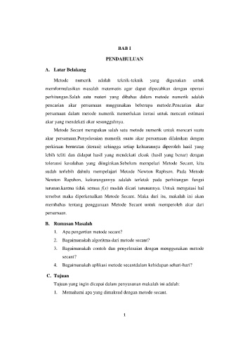 tersebut maka diperkenalkan Metode Secant. Maka dari itu, makalah ini akan