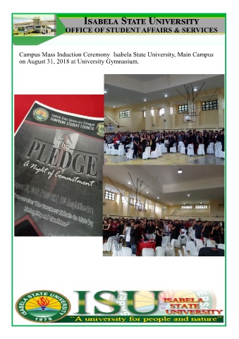 Isabela State University OFFICE OF STUDENT AFFAIRS & SERVICES Campus Mass Induction Ceremony Isabela State University, Main Campus on August 31, 2018 at University Gymnasium.