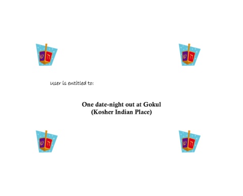 User is entitled to: One date-night out at Gokul (Kosher Indian Place)