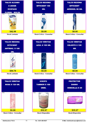Distribuidora P.R.O. 10 Tel.: 0351-458-8927 E-Mail: distribuidorapro@hotmail.com