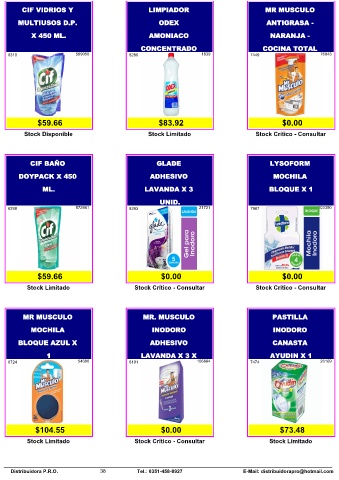 Distribuidora P.R.O. 38 Tel.: 0351-458-8927 E-Mail: distribuidorapro@hotmail.com