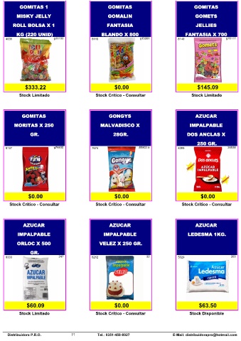 Distribuidora P.R.O. 71 Tel.: 0351-458-8927 E-Mail: distribuidorapro@hotmail.com