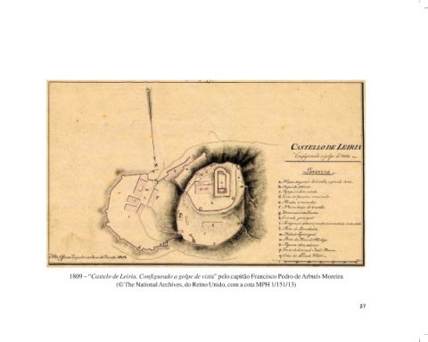 1809 – “Castelo de Leiria. Configurado a golpe de vista” pelo capitão Francisco Pedro de Arbués Moreira (© The National Archives, do Reino Unido, com a cota MPH 1/151/13) 27