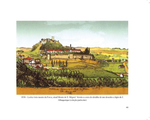 1836 – Leiria visto monte da Forca, atual Monte de S. Miguel. Versão a cores do detalhe de um desenho a lápis de J. Albuquerque (coleção particular) 43