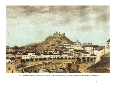 1870 – Panorama de Leiria, em desenho anónimo, publicado pela Litografia Lopes na Rua Nova da Misericórdia em Leiria 67