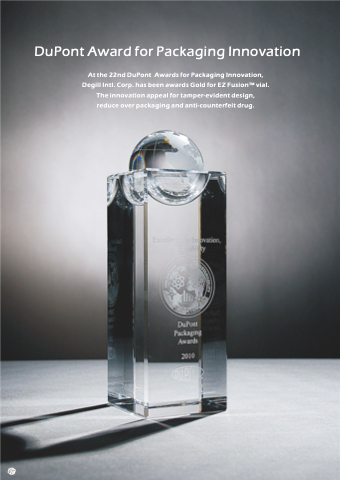 DuPont Award for Packaging Innovation At the 22nd DuPont Awards for Packaging Innovation, Degill Intl. Corp. has been awards Gold for EZ FusionTM vial. The innovation appeal for tamper-evident design, reduce over packaging and anti-counterfeit drug.