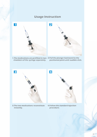1.The medications are prefilled in two chambers of the syringe separately.