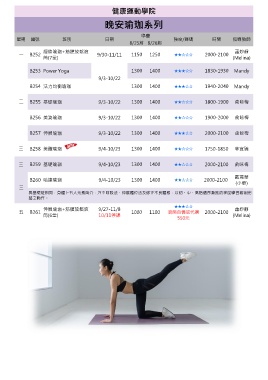 B257 伸展瑜珈 9/3-10/22 1300 1400 ★★★☆☆ 2000-2100 俞咏梅