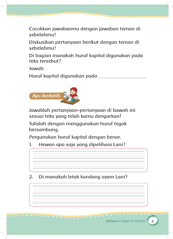 1. Hewan apa saja yang dipelihara Lani?