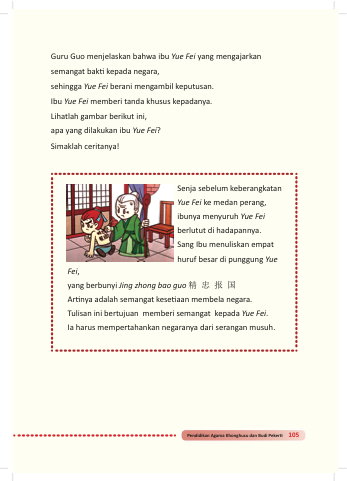 Guru Guo menjelaskan bahwa ibu Yue Fei yang mengajarkan semangat bakti kepada negara,