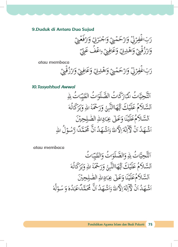 9.Duduk di Antara Dua Sujud atau membaca 10.Tasyahhud Awwal atau membaca Pendidikan Agama Islam dan Budi Pekerti 75