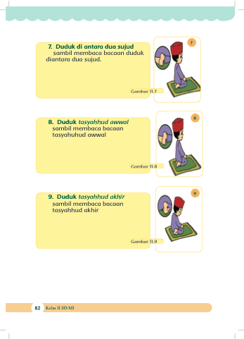 8. Duduk tasyahhud awwal sambil membaca bacaan tasyahuhud awwal