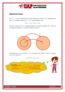 Sea una Transformación Lineal llamaremos núcleo de la transformacion