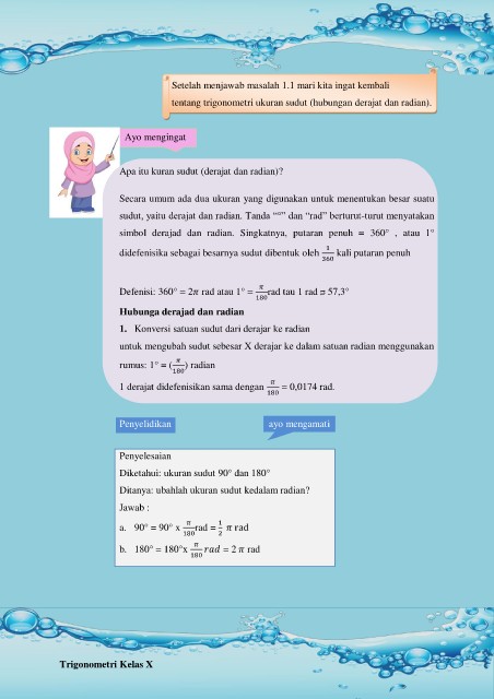 tentang trigonometri ukuran sudut (hubungan derajat dan radian).