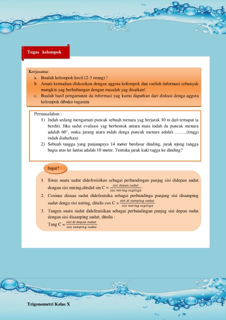 2.  Cosinus  disuau  sudut  didefenisika  sebagai  perbandinga  panjang  sisi  disamping