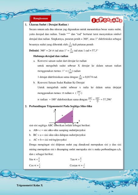 untuk mengubah sudut sebesar X derajar ke dalam satuan radian