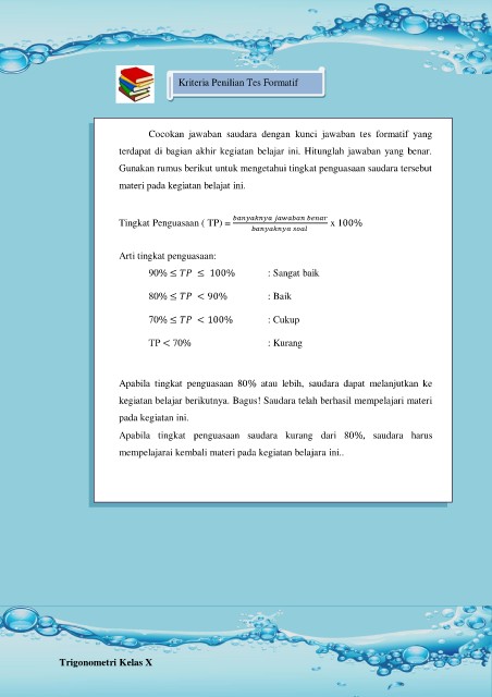 Apabila tingkat penguasaan 80% atau lebih, saudara dapat melanjutkan ke