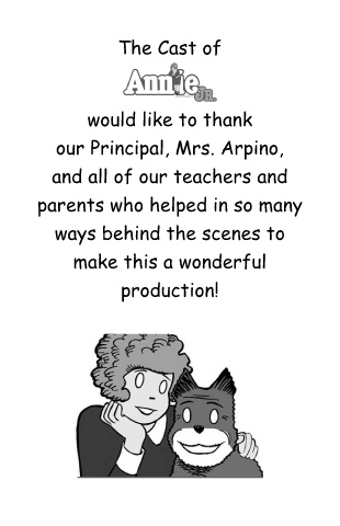 The Cast of would like to thank our Principal, Mrs. Arpino, and all of our teachers and parents who helped in so many ways behind the scenes to make this a wonderful production!