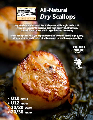 Bay Winds Dry All-Natural Sea Scallops are wild-caught in the USA,
