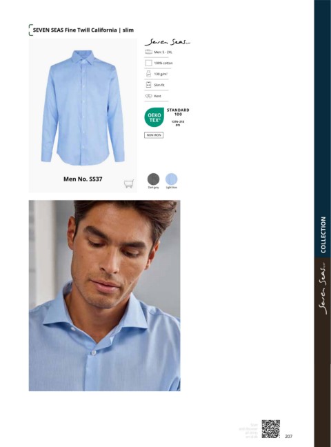 SEVEN SEAS Fine Twill California | slim Men: S - 2XL 100% cotton 130 g/m 2 Slim fit Kent KE NON IRON Men No. SS37 Dark grey Light blue COLLECTION Scan and discover all shirts on id.dk 207