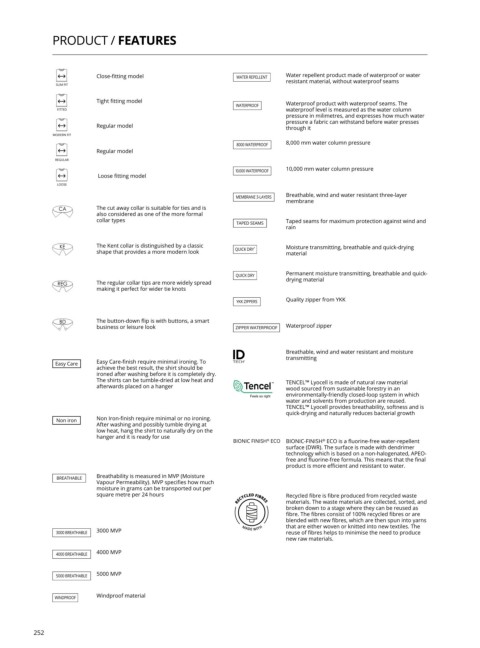 Close-fitting model WATER REPELLENT Water repellent product made of waterproof or water