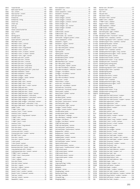 0038 Neck warmer | stretch ..................................................... 163 0613 Sweatshirt | business ......................................................... 57 2020 YES polo shirt....................................................................... 44