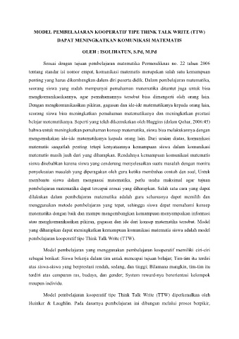 MODEL PEMBELAJARAN KOOPERATIF TIPE THINK TALK WRITE (TTW)