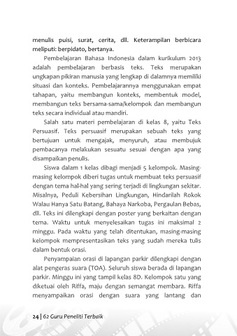 masing kelompok diberi tugas untuk membuat teks persuasif