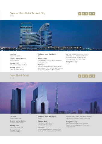 Al Maktoum Street Deira 10km, Jumeirah Beach Outdoor swimming pool, fitness centre, Dubai Festival City 3km connected to: a shopping mall, kids’