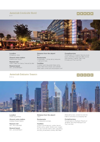 Emirates Towers Station 15 restaurants and bars Transportation to the Beach Resorts of Breakfast is available 24 hours a day