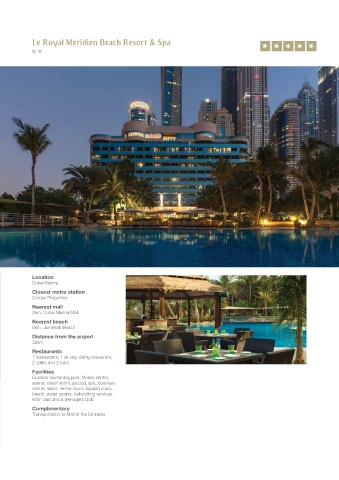 Closest metro station Distance from the airport centre, salon, tennis court, kids’ club and
